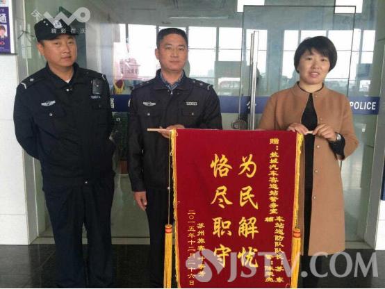 这时,李某就将行李箱交给驾驶员郭左军保管,后来郭左军将行李箱交给了公司处理。在警务室苏东的带领下,车站将行李箱归还给叶女士,叶女士说包里有钱包。衣服,还有携带的其他物品。万分感谢的叶女士在26号回苏州时,来到五星车站候车大厅,将自己早已经准备好的锦旗交到车站警务室苏东的手里。