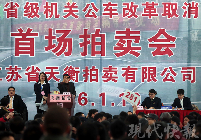 江苏省省级机关公车改革取消车辆首场拍卖会现场 现代快报记者 顾伟 摄