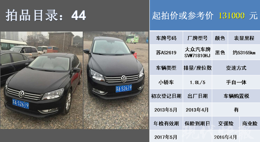 44号帕萨特 起拍价最高