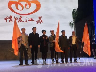 (现场领导颁授“情暖江苏”网络公益行动旗帜,启动“情暖江苏”网络公益行动)