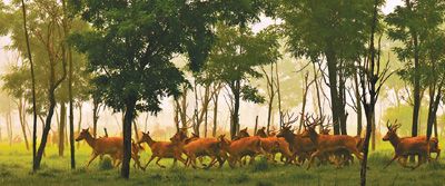 据介绍,麋鹿原生活于我国长江中下游地区,于19世纪末在国内消失。1986年,39头麋鹿从英国回到故乡,经过原国家林业部专家组选址,放养于大丰水草丰茂的黄海之滨。