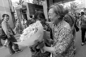 记者看到,有些家长买了两束鲜花,“一束送孩子,一束送老师。”杨妈妈说,她的女儿在十三中念书,平时老师就像孩子的妈妈一样,“对他们非常关心,他们的生活和学习,老师一点都不马虎,这束花,我是送给老师的。”
