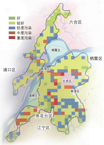 而代表声环境最好的绿色区域,主要集中在江北的六合以及浦口部分区域,江南的绿色区域主要集中在牛首山周围以及江宁区的江宁镇。