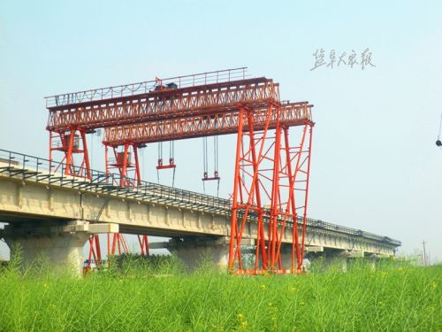 连盐铁路中山河特大桥桥梁架设过孔现场