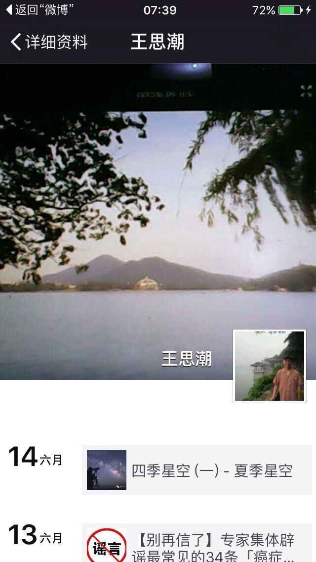 凡是涉及天文科普,王思潮会第一时间在自己的微信里更新,如今,他的微信永远定格在 6 月 14 日,最后一条微信转发的是 " 四季星空(一)- 夏季星空 "。