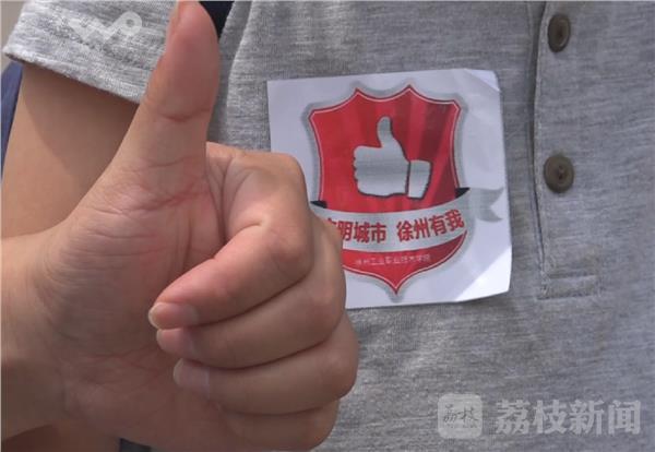 大学生濮阳志斌,是一名大二的学生,他和其他19名同学一起,利用暑假假期一起走上徐州街头,为大家宣传倡导文明出行,对文明的路人点赞,对不文明的行为进行纠正。