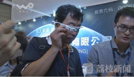 在现场有一款只有镜架的智能眼镜,镜架一侧前端有个摄像头,可以实时拍摄镜头所对方向的物体,并实时传到电脑或手机上。另外摄像头旁还有一个棱镜, 可以和手机操作相连,相当于一个屏幕,查看手机上的所有信息。不过,这个棱镜有一个很大的缺点,就是太厚重, 透视效果不好,而且屏幕太小。而未来的趋势,就是把棱镜做成和眼镜片一样厚度,不用的时候是一个普通防辐射的眼镜,使用的时候它就会成为一个屏幕。参展商告诉记者,这是利用了光波导原理制成,未来会成为军民两用产品。