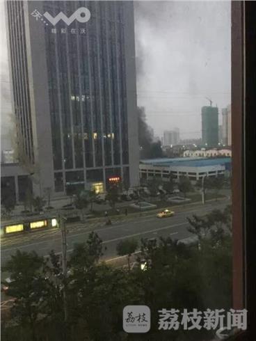 荔枝新闻通讯员赶到现场时,现场已经是浓烟滚滚,据了解,这是一家专业制造大客车的工厂,当时场地停满了待出厂的大客车,昨天的暴雨已经淹到了这处停车场,当时水已经到了小腿的位置,虽然消防全力扑救,但仍有3辆大客车完全烧毁,起火原因初步调查是大水浸湿了汽车电路引发。