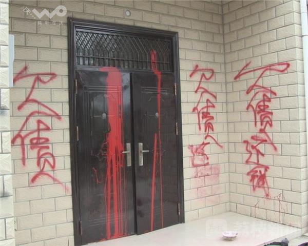 7月11日凌晨2点多,家住南京化工园葛塘街道长城社区西埂张庄组的居民张文生一家,被砸玻璃的声音惊醒,追出来一看,发现自家的大门及房屋的外墙上,被人莫名涂上红色的油漆字,竟然全是催债的。目前,当地警方已介入调查。