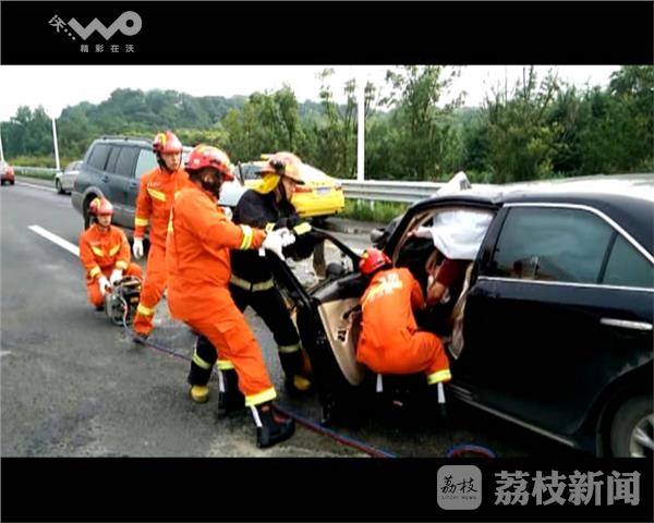 两车相撞后,丰田轿车严重受损,司机也被卡在车里不能动弹,消防队员动用破拆工具将车门顶开,终将司机救出,所幸司机只是腿部受伤,并无生命危险。