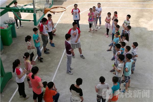 2016年7月11日,江苏大学“大眼睛”公益团队11名大学生志愿者来到安徽省六安市金寨县汤家汇镇笔架山小学,利用暑期开展为期21天的爱心支教活动。志愿者为当地大别山区留守儿童开设语文、英语、自然、素质拓展等课程,丰富他们的暑期生活,为留守娃送去爱心关怀。