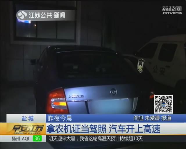 昨晚8点多钟,盐城高速交警一大队的民警在G15沈海高速大丰收费站例行检查的时候,查到一辆斯柯达轿车,车主竟然拿着农机操作证当驾照,把汽车开上了高速。