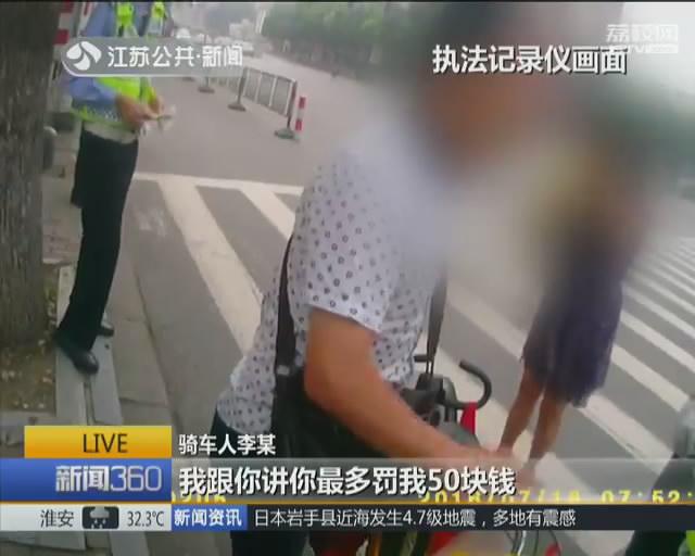骑车人李某被拦下后,虽然承认了自己的违法行为,但觉得罚款太多,于是试图和交警讨价还价。交警告诉李某,对于违法行为的罚款都是有规定的,骑车进入快车道要被罚款50元,违规带人要被罚款20元。南京交警六大队二中队民警陈墨函介绍到,当时李某的态度也很强硬,声称自己只给50元,多一分都没有!