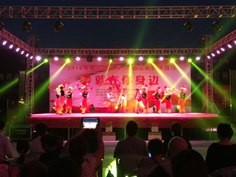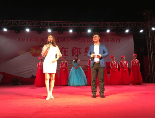 活动地点位于徐州城区的中心地带—二环北路万科北辰天地广场。尽管已过立秋,但天气依旧炎热,热情的观众早早就来到了我们的活动场地,频道准备的上千把扇子,成了最受大家欢迎的小纪念品,瞬间被分发完毕。鼓楼区司法局组织的文艺节目,生动多彩,在炎热的夏夜带给观众丝丝凉意。作为徐州的非物质文化遗产,柳琴戏具有独特的地方特色,吸引了大批观众驻足。歌舞、小品、表演唱,穿插在法律知识问答当中,让大家在欢笑声中了解法律知识。
