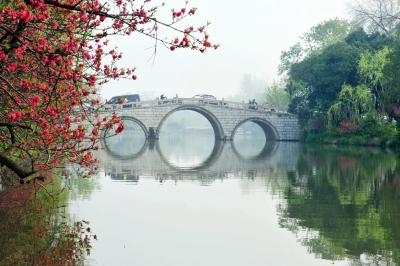 大虹桥是扬州市级文保单位,横跨于瘦西湖上,初建于明崇祯年间,原是一木板桥,围以红色栏杆,故名“红桥”。清乾隆元年改建为石桥。因桥形似彩虹卧波,遂将“红桥”改为“虹桥”。现在的大虹桥于1972年扩建,由一孔桥改为三孔桥。桥面拓宽,桥身拉长,桥坡改小,较原桥更为壮观。桥上有汽车往来、桥下有游船过往。不少游客会在桥上拍照留念。