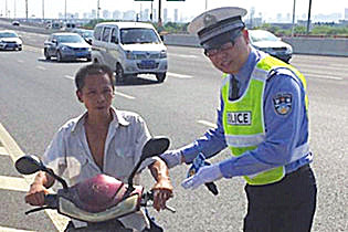 “每个高架道路的上匝道口,都会有禁止非机动车行驶的交通标志。”市交警支队民警许立介绍,此次行动的目的是为了提醒广大市民,不要冒险从高架道路通过,因为在城市高架道路,机动车的速度很快,而且明令禁止非机动车以及行人在高架道路上通行。对于电动车违规上高架的行为,交警部门对驾驶人员现场处以50元的经济处罚,但是交警表示,罚款不是目的,只是通过经济处罚,加强教育的意义。