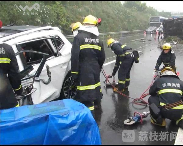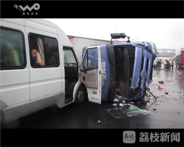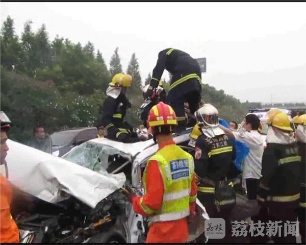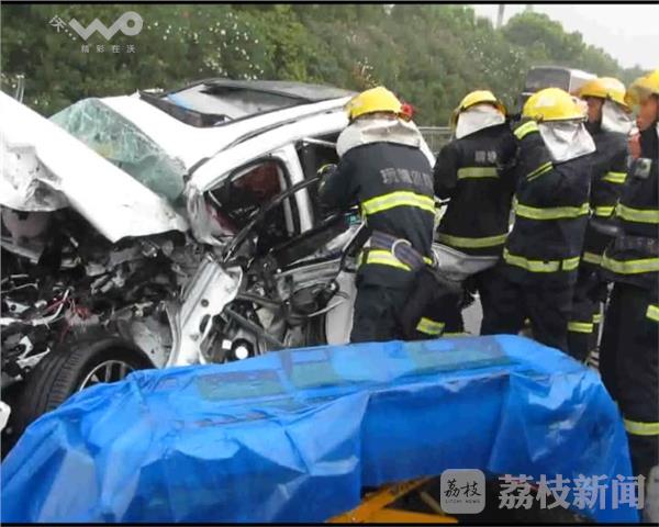 经过近2个小时的紧张救援,两名被困人员终于全部被成功救出,据了解,往江阴方向的大挂车在行驶过程中突然刹车失灵,变道后失控侧翻,穿过隔离带到了对向车道,对向车道上一辆轿车和一辆面包车躲闪不及撞了上来,事故造成多人受伤。幸好救援及时,未造成更严重的后果,此次事故的具体原因,还在进一步调查之中。