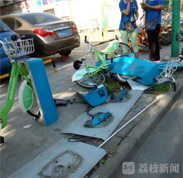 8月23日上午9点多,有淮安市民爆料称淮安市电厂河小区门口许多公共自行车被撞飞,损毁严重,现场一片狼藉。