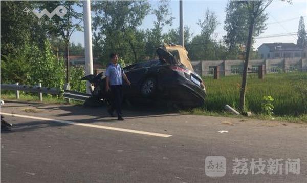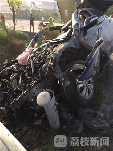 现场看到事故非常惨烈,整辆轿车已经呈现敞篷状态前车引擎盖被撞飞,挡风玻璃完全被撞碎散落,车内副驾驶人员满头是血,三轮车驾乘人员也在事故中受伤。