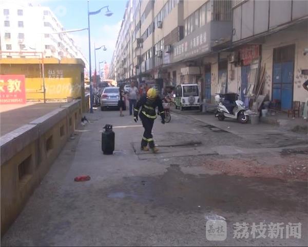 消防人员赶到现场时,发现该小区3楼一个住户的窗户里浓烟滚滚,并不时发现有火苗窜出,打开房门时发现里面是一片火海,天花板等装修材料正在哗哗地往下掉。消防人员立即出动一只水枪进行扑救,经过勘察,发现起火部位主要是在厨房部位,在水枪的掩护下,一名消防人员冲进火海抢出一只嗤嗤冒气的煤气罐。大约15分钟后,房间的火就被扑灭。
