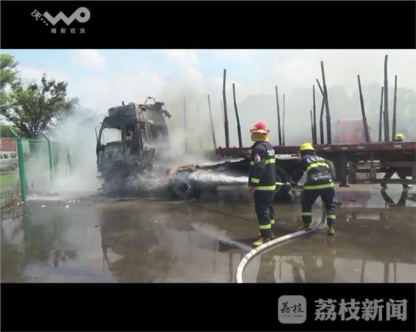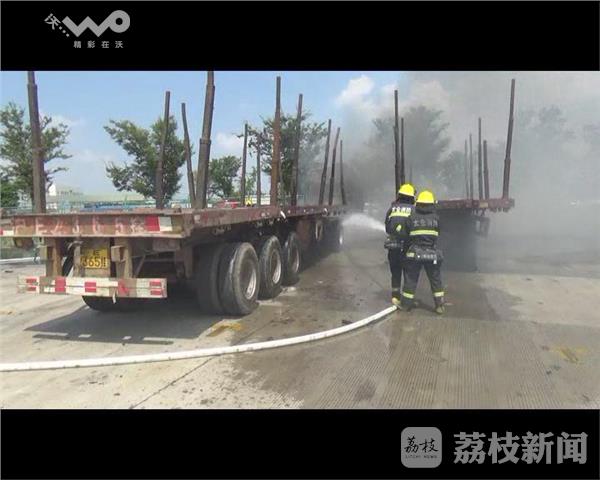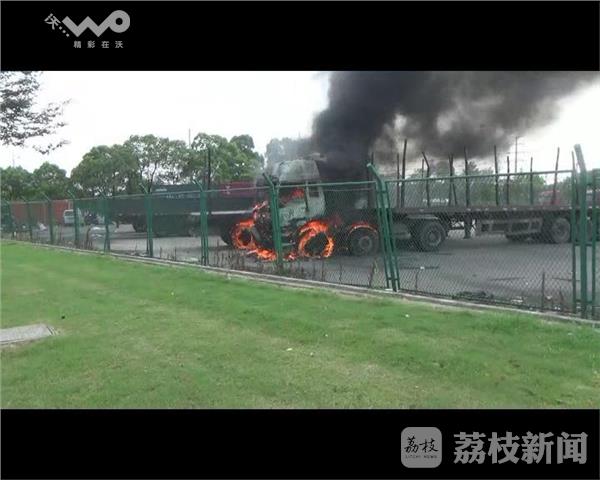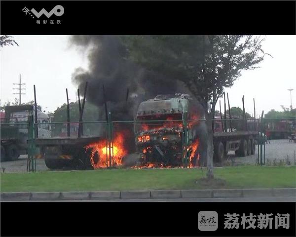 昨天下午1点多,苏州太仓通港路停车场内两辆货车着火,其中一辆货车车头着火,另一辆货车尾部着火。消防官兵出2支水枪扑救,20分钟后火势全部扑灭。一位司机说,当时车子短路自燃,火势被风吹到旁边挂车上,引燃了挂车尾部酿成火灾。