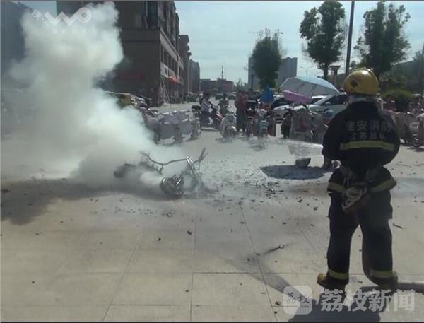 今天(25)号上午11点,有市民报警说,在淮安市涟水县红日路一家售楼中心门前,一辆停放在此的电动车突然起火,涟水县消防中队立即赶往现场进行扑救。
