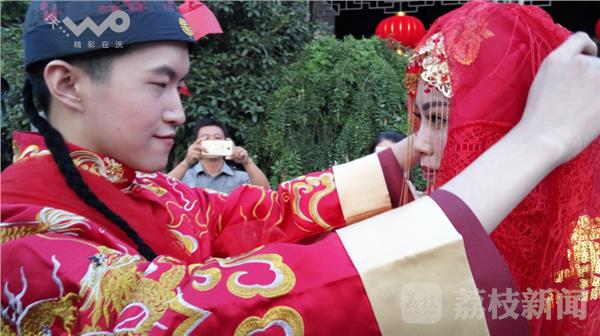 古代中国婚礼都以周礼为基础,但融合各地风俗,又各不相同。清江浦的地理位置在我国南北分界线上,往北都是平原山路,往南则水网密布,因此当地婚俗与众不同。在《清稗类钞》里就有单独一章讲“淮安婚俗”,清江浦的婚俗要细说起来,三书六礼、四言八句、会亲回门、闹洞房、考媳妇,既有历史典故,又有文化内涵。据介绍,本场婚礼选择其中一部分进行展示,并插入一些古典文化元素。