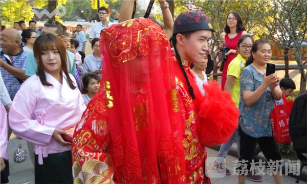 婚礼最重要的莫过于掀开新娘的盖头行夫妻跪拜之礼,随后各自送上彼此祝福才能被送入洞房,现场许多围观市民纷纷热情鼓掌并送上祝福。