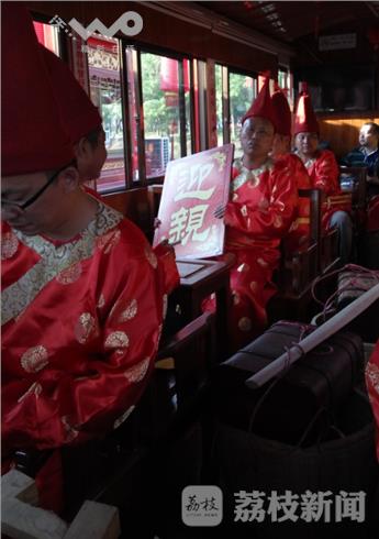 淮安一对青年情侣体验了一把穿越清朝当起“新郎官”和“新娘子”,虽说都是穿越婚礼但是现场的迎亲队伍不仅有媒婆花轿接亲,还有送礼队伍,随着浩浩荡荡开赴大闸口渡口时,恰巧遇上前来淮安府治水康熙皇帝,皇帝现场为这对新人赠送玉如意和金花各一副以示祝福,随后两队新人登船开始水上接亲,按照古时淮安水上婚礼习俗,接亲婚船必须过桥往返一次后登上另一处渡口上花轿。
