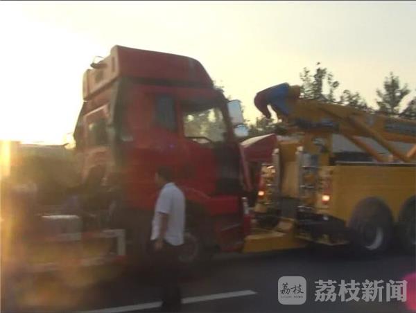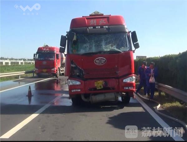 记者赶到现场时,发生追尾的前方的货车已经被高速交警拖离现场,一辆大型油罐车停放在车道东侧,驾驶室有撞击痕迹。在车的罐体下方,大量的汽油还在哗哗的流,据油罐车驾驶员说,当时,他驾驶这辆车从淮安市区驶往连云港,当行驶该路段时,突然前方一辆集装箱货车刹车,他刹车不及,就撞了上去。