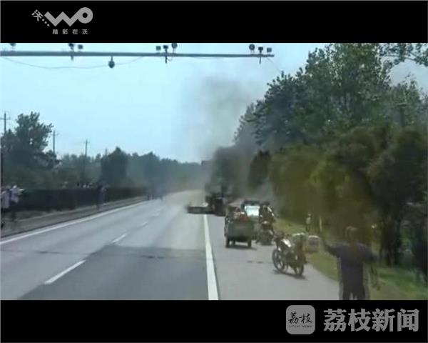 8月28日上午10时,盐城市大丰区刘庄204国道由北向南斗龙港大桥旁,一辆行驶中的货车突然从后车厢冒烟,过往群众发现险情提醒司机查看。接到报警后,当地消防部门及时赶赴现场进行处置。