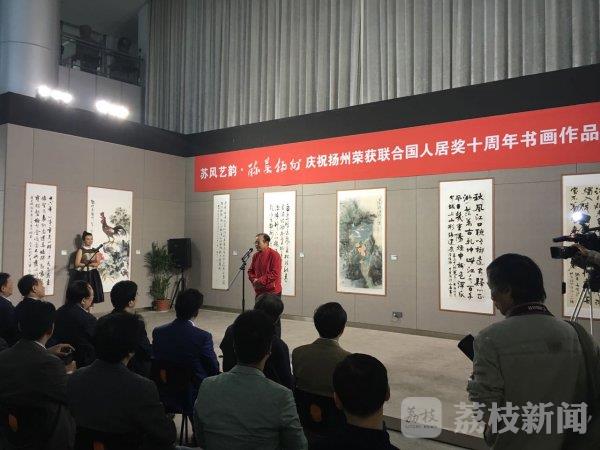荔枝新闻记者今天(10月15日)从扬州市文广新局获悉,“苏风艺韵醉美扬州·庆祝扬州荣获联合国人居奖十周年书画作品展”在江苏省现代美术馆开幕。90余幅书画作品绝大部分由扬州本地画家创作,部分省内名家和外地扬州籍书画家的作品参展。