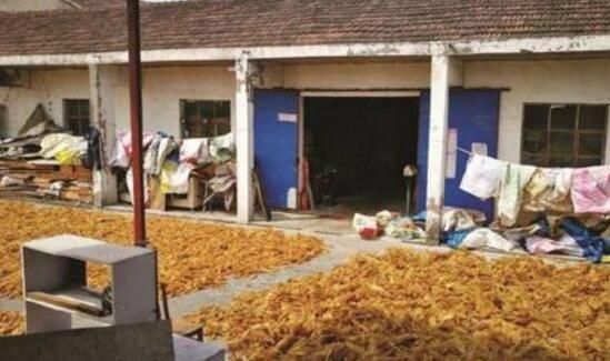 皮肚堆放在空地上进行曝晒