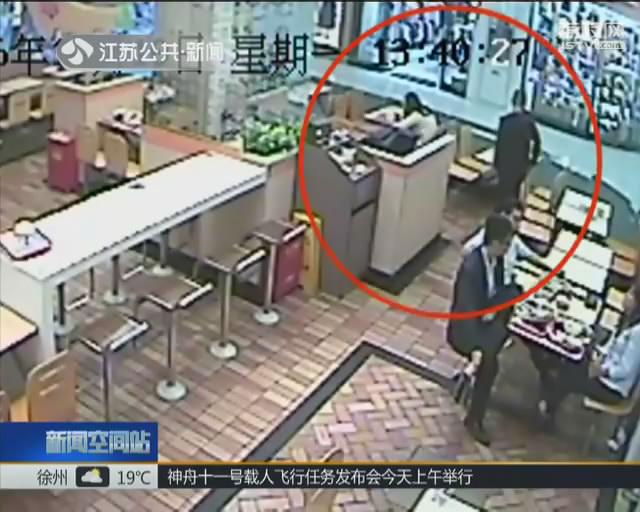 监控显示,当天下午,李女士独自在快餐店吃饭,挎包就放在身旁的凳子上,这时,一名黑衣男子四处观察后坐在了李女士身后的坐椅上。当这名男子试着第一次动手的时候,因为感觉有人看到了,所以手又收回来了,整个过程李女士毫无察觉。