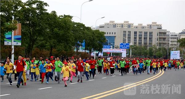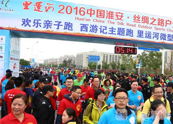 上午9点,参赛的选手随着裁判员发了一枪声响,从淮安奥体中心出发开始了比赛。参与比赛的6000多名选手参加长跑活动和户外三项运动挑战赛。
