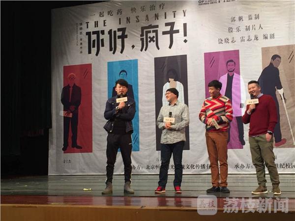由同名话剧改编,饶晓志执导,万茜、周一围、王自健、金士杰等主演的荒诞悬疑喜剧电影《你好疯子》即将于明年1月6日上映。今天晚上(11月17日),导演饶晓志携主演周一围、李虹辰空降南京航空航天大学开启全国“爱疯”校园行,与学生影迷互动交流,诚意十足,引发热烈反响。