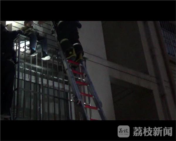 当救援人员赶到现场时,一名10岁的小男孩正坐在二楼防盗窗上,由于天气寒冷男孩已经手脚麻木、体力透支,如不及时营救,随时可能会坠楼。了解情况后,救援人员立即架设拉梯展开救援,10分钟后小男孩获救。