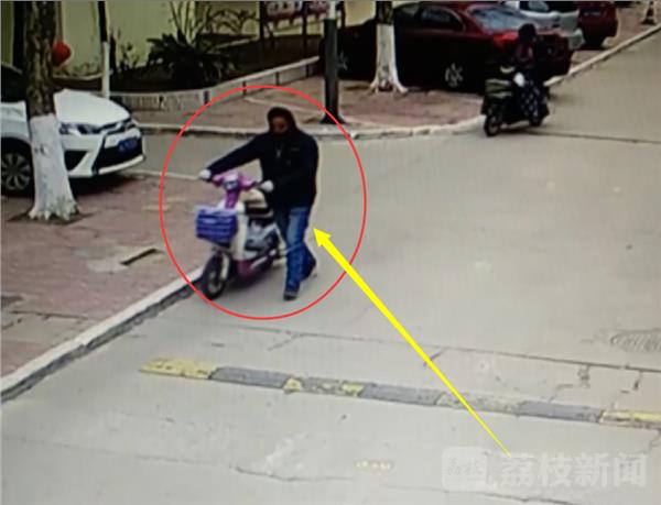 这是发生在今年1月31日的一起电动三轮车被盗现场监控,受害人粗心大意,忘记将电动三轮车进行上锁,嫌疑人就趁机将电动三轮车推走。通过监控追踪,民警发现嫌疑人一直将车辆沿铜山路向东推,最终将车辆推到黄山垅附近。