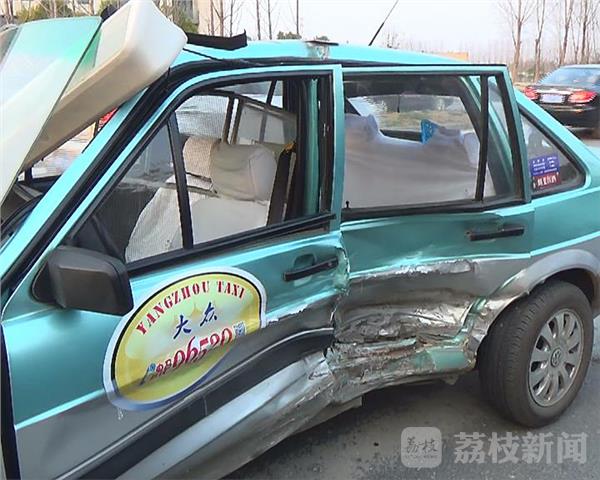 3月7号下午四点多钟,在扬州吴州路吴州大桥东侧,一辆直行白色轿车行驶到加气站出入口时,由于判断失误以为出租会开走,就向右继续直行,可是出租并没有直接离开,与其发生猛烈碰撞,两车受损严重。出租车驾驶员被困驾驶室,随后被救出送医院,目前具体车祸经过还在调查中。