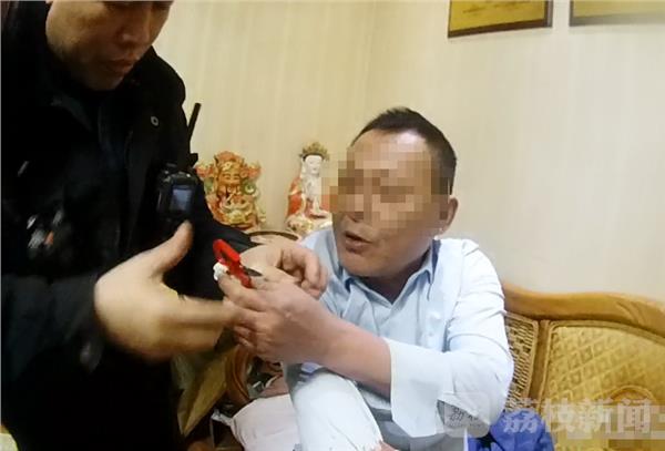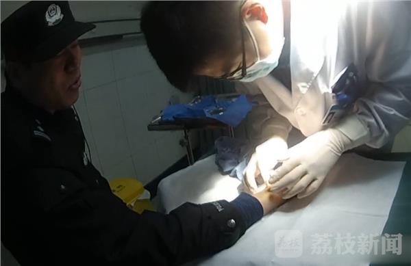 在3月5号晚上9点多钟,徐州市云龙区新生派出所辖区发生一起家庭纠纷,民警赶到现场调解时,纠纷中的一名男子非常激动,手持剪刀去刺自己的大舅哥,出警民警立刻上前制止,并徒手夺下剪刀。在民警徒手夺剪刀的过程中,民警的手部被剪刀刺伤,缝了8针。3月7日中午,记者在新生派出所见到了刺伤民警的男子,男子痛哭流涕后悔不已。