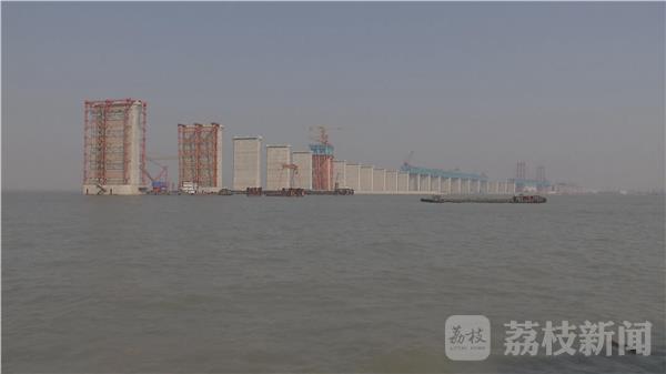 作为沪通铁路全线的控制性工程,沪通长江大桥主跨长1092米,其中28、29号墩是大桥的两个主桥墩,325米高的主塔将从这里拔地而起。目前,28号墩主塔已完成高度为41米的下塔柱施工,进入下横梁浇筑阶段。作为整个塔柱部分单次体量最大的一次施工,下横梁高14米,分两次浇筑完成,将消耗钢筋1200多吨,混凝土近15000方,施工周期计划在两个月。