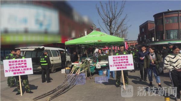 高新区一个商业街上,为了治理无证经营的流动摊位,城管的工作人员竖起了一块提示语,上面写着“无证摊点食品,缺斤少量严重,卫生条件极差,为了你和家人的安全,请勿购买”。城管工作人员告诉我们,他们这次的举牌整治是针对这里的一个水果摊。因为多次对其进行宣传教育效果不佳,无奈之下,他们选择了用这样的方法进行整治。城管工作人员:“我们没办法 ,就做个宣传, 就把那个牌子举在这边, 告诉他们 ,这边这个摊点有缺斤少两各方面的问题, 给他们一个警示嘛 。”
