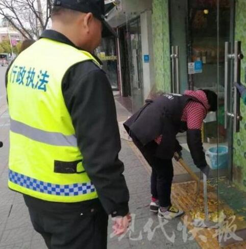 “我们做错了,以后再也不会随便扔垃圾了。”店主自觉清扫了门前的果皮,还拿出20元为自己的不文明行为“买单”。