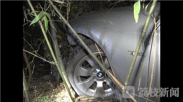 经过询问得知 ,他们开的一辆宝马轿车已经坠到山坡下面,幸运的是两人都已经从车内出来。民警循着车辆的轨迹,在山坡下方20米远的地方,发现了一辆安徽牌照的宝马轿车,车身损毁严重。