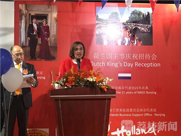 今晚(4月21日),荷兰贸促会南京代表处在南京举行荷兰国王节招待会,庆祝荷兰威廉亚历山大国王陛下的生日(4月27日)及荷兰国庆节。荷兰驻上海领事馆副领事欧雅琳出席活动并致辞。 欧雅琳说,我们的国庆正值春天,一个全新并对未来充满了乐观的季节。今年是荷兰与中国正式建交45周年,但两国之间的关系和友谊可以追溯到几个世纪之前,在这几个世纪中荷双边的关系、友谊和贸易发展当中,南京的地位独特。她说,创新对于荷兰社会具有重要的意义,没有创新,荷兰就不可能赢得数百年来与大海的斗争,创新的关键是对于社会提出的挑战找到解决的方案。欧琳雅说,中国与荷兰在许多领域里都面临共同的挑战,如老龄化社会、环境和可持续发展、食品安全、能源安全等。希望双方利用现有的工具和资源,加上企业的积极参与,积极寻求合作,找到解决共同社会问题的创新方案。