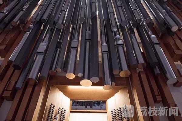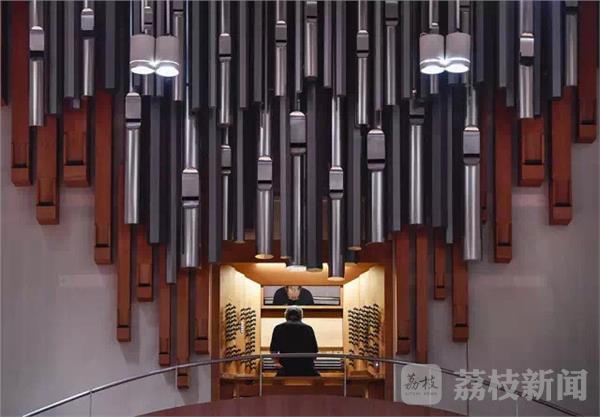 管风琴独特的“倒挂式”设计,棱角鲜明的音管加入六角形装饰管,将这一历史悠久的乐器打造出现代风格,与音乐厅整体形成极高的匹配度。陈正哲解释,管风琴“乐器之王”的称号可不是浪得虚名,很多世界级音乐大师的作品中,都有管风琴的“戏份”,比如“西方近代音乐之父”巴赫的作品,起码有一半需要管风琴参与演奏。随着江苏大剧院即将投入使用,观众终于有机会亲耳聆听管风琴的声音,陈正哲说:“管风琴的声音听起来很庄严,基本上一个管风琴可以抵上一个管弦乐团的声音。在开幕以后,我们会有一流的管风琴音乐。现在暂定就是祖宾.梅塔会带着以色列爱乐,会有一首管风琴的协奏曲。”