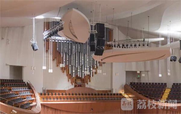 记者在现场看到,有1500个座位的音乐厅装饰风格清新淡雅,内设池座一层和楼座两层,而这里的坐席是环绕在舞台四周的,缩短了听众和乐队之间的距离。江苏大剧院运营总监陈正哲说,音乐厅里的“镇厅之宝”是管风琴,“这个音乐厅的镇厅之宝就是Rieger的管风琴。这个管风琴是咱们国家第二大的管风琴,也是唯一一个倒挂式管风琴,样子就跟音乐厅更容易融合在一起。总共有6067根管子,92根音栓,正好比国家大剧院少了两根音栓。”