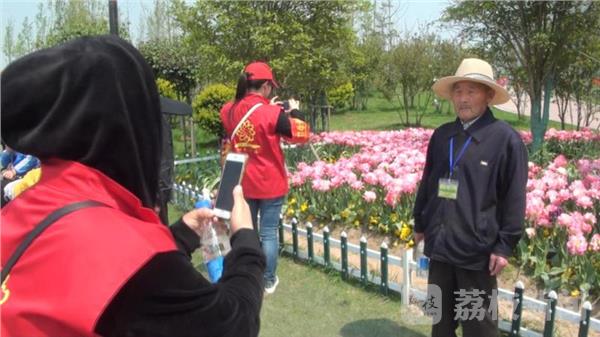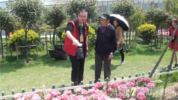 这位瘫坐在轮椅的残疾人,叫徐志国,他在义工倪正秀的推送下,第一个进入到花海景区,看到满眼盛开的郁金香,平时难得出门的他露出了久违的笑容,连声告诉记者,这样的活动搞得好。负责此次活动的心爱义工人事部负责人告诉记者,今天一共来了六十五位老人,为了保证他们的安全,协会给每位老人配备了一名义工,由他们负责搀扶老人赏花、给老人拍照等。在景区西侧舞台,景区工作人员得知义工们想借用舞台给老人们表演节目时,主动提供方便,义工们精彩的表演,不但博得了老人们的阵阵掌声,还吸引了众多游客驻足观看。