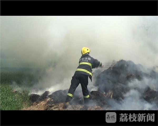 4月23日11时50分许,淮安市马甸镇一名90岁的老太在烧荒草时不慎将草堆引燃,当地消防部门接到报警后,迅速赶赴火灾现场实施扑救。 当消防队员赶到火灾现场时发现,一个长约5米、宽2米、高2米的草堆正在燃烧,现场的群众正在自救。着火草堆距房屋约3米远,因道路狭小,消防车无法靠近,而现场没有水源可供消防手台泵吸水灭火。消防队员针对现场情况,决定让草堆在安全的前提下进行彻底燃烧殆尽,同时请附近的村民拿来数个水桶盛满水放在草堆旁进行应急,防止草堆火势失控。待村民们拿来盛满水的水桶后,消防队员随即利用钉耙等工具将草堆扒开,让其彻底燃烧。1个小时后,着火的草堆被彻底烧尽。