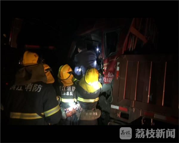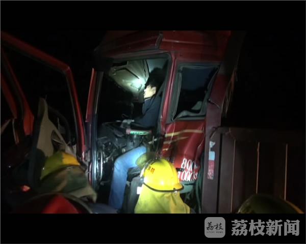 4月24日凌晨2时28分,312国道丹阳市丹延公路与312国道红绿灯处发生一起交通事故,有人员被困,急需救援。接到报警后,云阳消防中队火速赶赴现场处置。消防官兵到达现场后发现,现场为两辆货车追尾,后面一辆货车车头严重变形,挡风玻璃破碎一地,车上一名男子被困车内,双腿受伤严重,无法动弹。消防立即爬上驾驶室将破碎的挡风玻璃和杂物清除,利用扩展器将变形的车门破开,随后用液压顶杆撑开变形的驾驶室,大约十分钟后被困人员被成功救出,随即由现场120急救车送往医院救治。 前车驾驶员介绍,当时前车正在依次排队等红灯时,后面货车突然撞上来了,发生事故之后立即报警。该起事故疑似追尾货车疲劳驾驶,事故原因正在进一步调查之中。